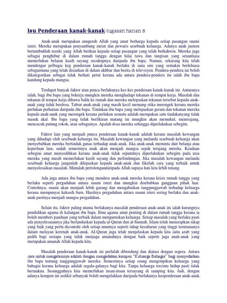 Contoh Karangan Kes Penderaan Kanak Kanak : Langkah Langkah Menjaga Keselamatan Kanak Kanak